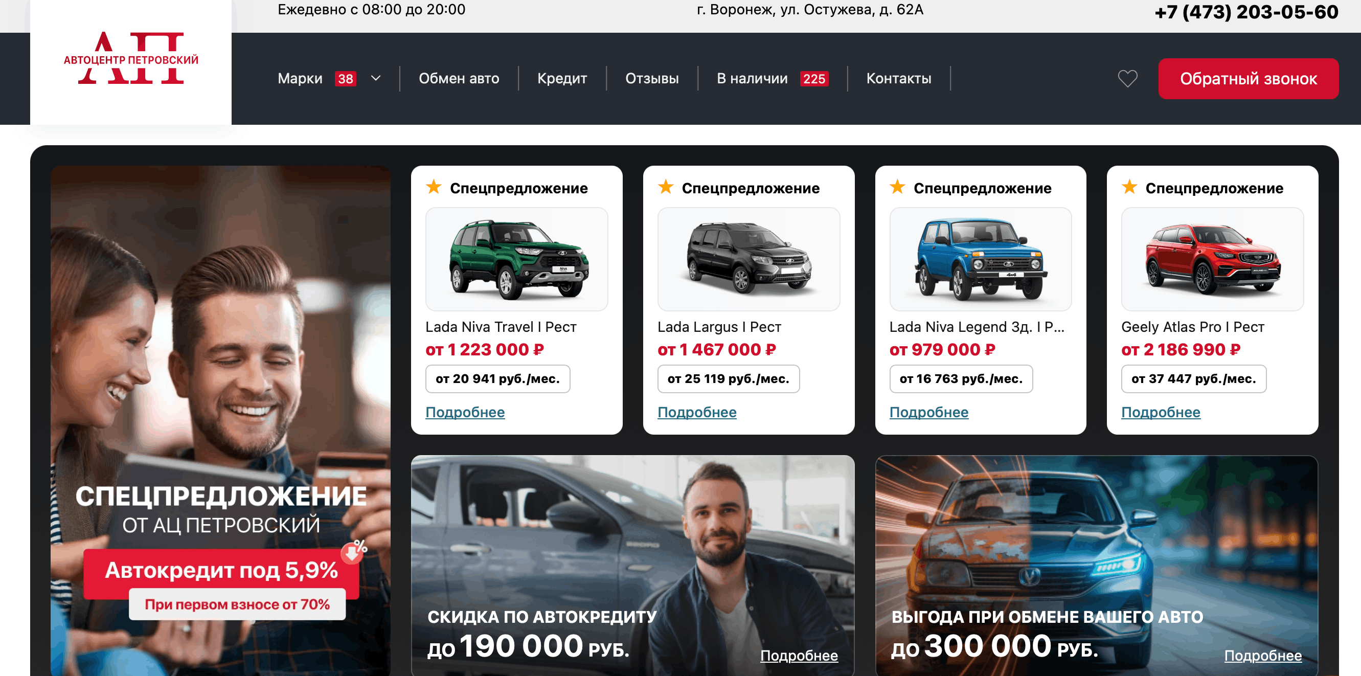 Автосалон находится по адресу: г.Воронеж, ул. Остужева, д. 62А. Также на нашем сайте представлена карта и схема проезда.
